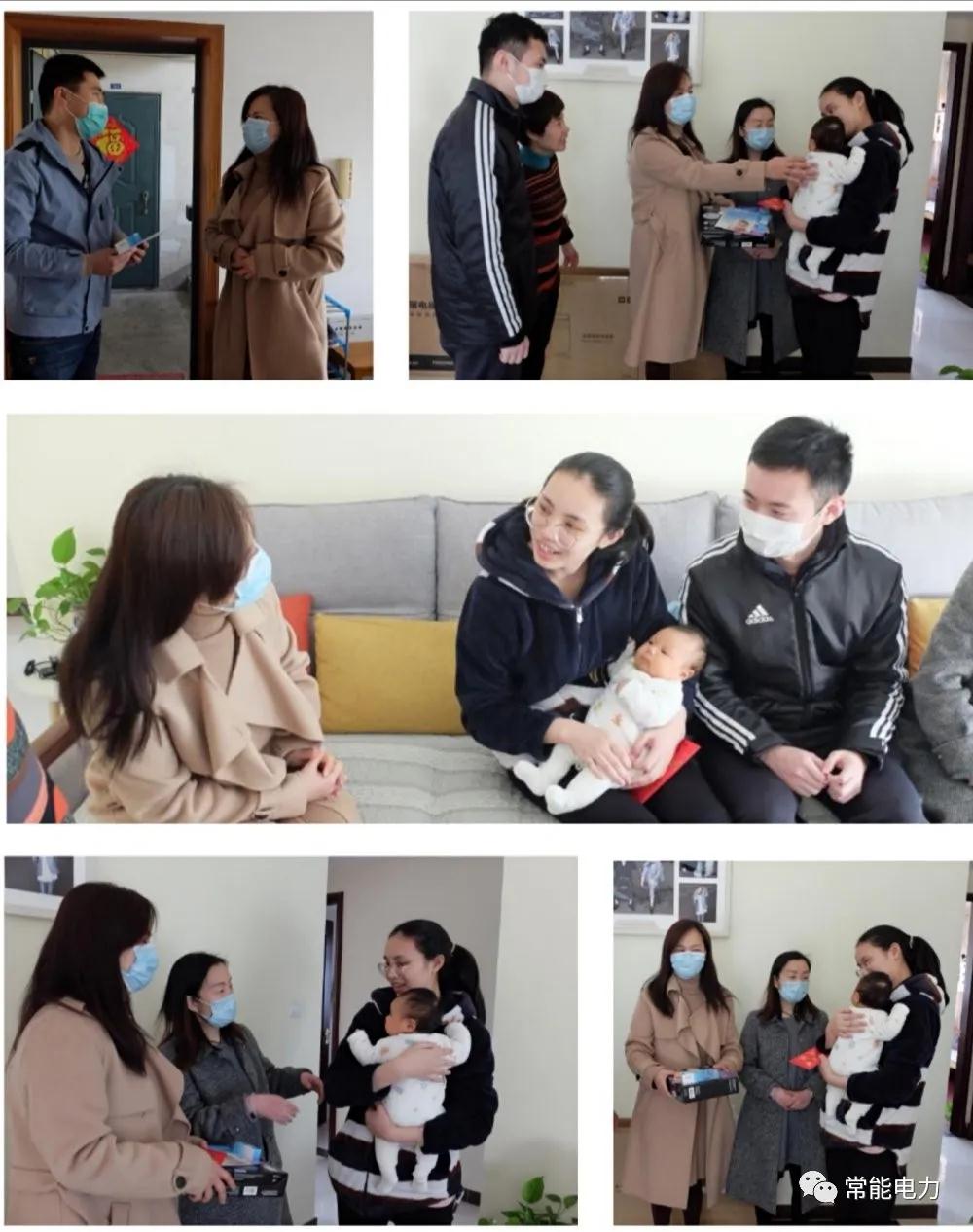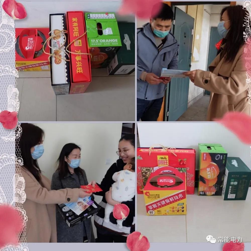 3月19日上午,常州市常能電力工程咨詢(xún)有限公司總經(jīng)理夫人周晴晴攜綜合部經(jīng)理謝堅、變電部經(jīng)理黃立波、技經(jīng)部經(jīng)理戴曉紅等一行人先后為妻子都剛剛生育不久的瞿陽(yáng)同志和吳江楓同志送去公司的關(guān)懷和慰問(wèn)。